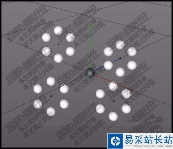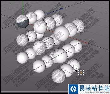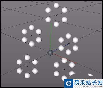 3、選擇:網格克隆工具;鼠標點住球體,向外拉,即可拉出XYZ三軸向都有三個球體