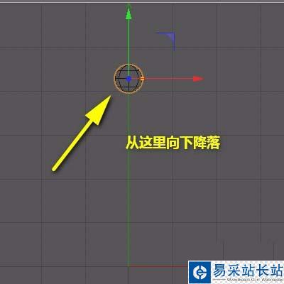 2、轉到正視圖;把球體縮小些。把球體向上移到目標位置。從這里向下降落。