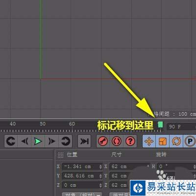 4、轉到時間線這里,把標記移到90F這里,這時結束點。