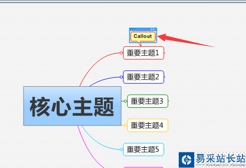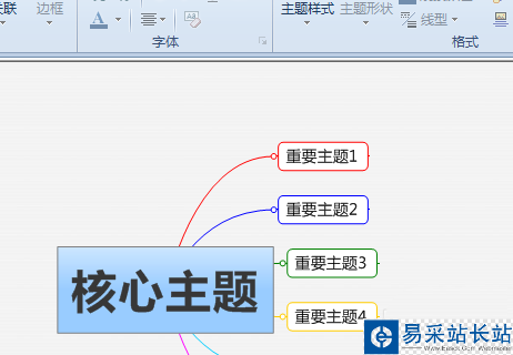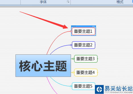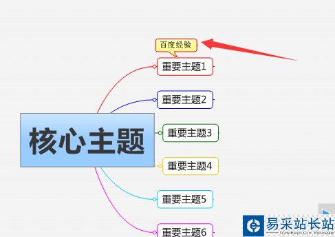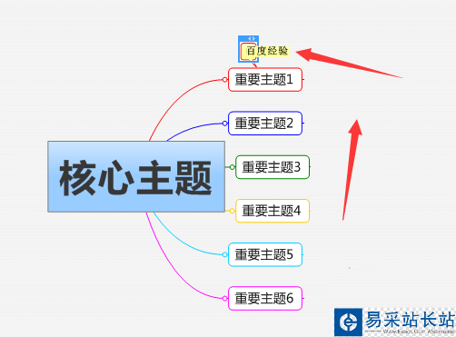 1、首先,在在當前打開思維導圖的中,需要對當前中主題進行天啊及上附注。