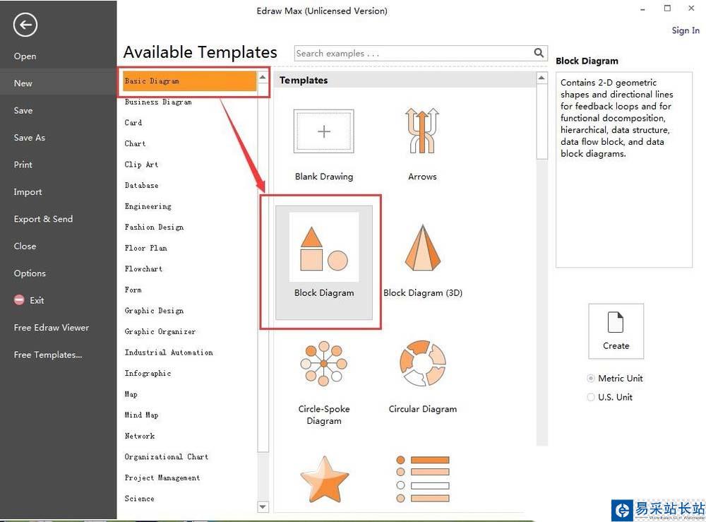 2、在Basic Digram基本圖形中找到并雙擊一下Block Digram;