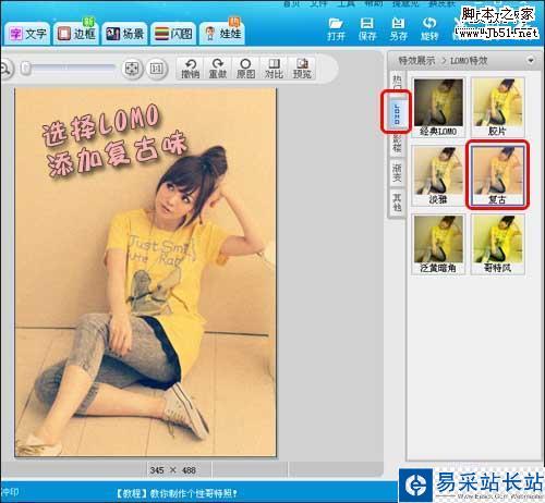 步驟二:打開“圖片處理”,會看到有很多風格的照片風格,在“LOMO”里選擇“復古”風格。