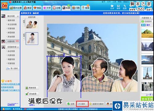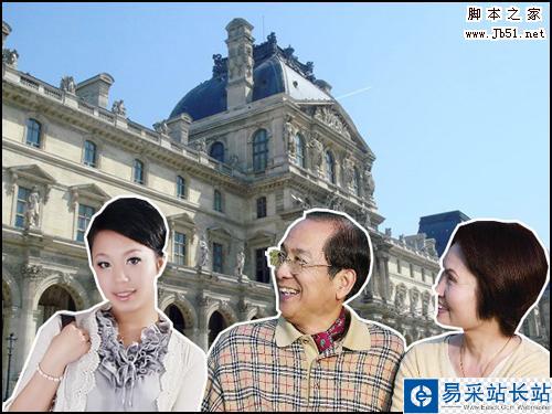 2.再來看一下這個效果圖,如圖5。由于工作的關系,小編沒能常陪在父母身邊,一同出游的愿望也就一直沒法實現。不過今天小編利用美圖秀秀的場景功能,讓爸媽和小編我一起玩了趟出境游,看還有照片為證哦。