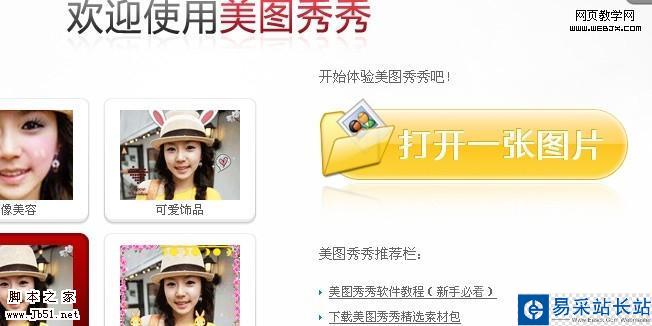 先下載安裝美圖秀秀(點擊進入下載頁面),啟動軟件。一開始我要做個欣寶的搖頭娃娃。如圖所示: