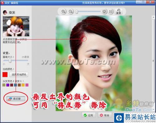 如果邊緣有染發出界的情況,別著急,用“橡皮擦”進行擦除即可。如圖5所示。