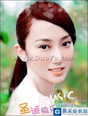 當然這么好看的一張照片,僅僅是為了預覽染發效果,是不是太浪費了?不妨再加點氣泡邊框和圣誕快樂文字。當然軟件中素材很多,你可以自由發揮!秀在論壇和貼吧,也會成為人氣超旺的圣誕MM咯!
