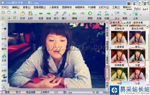 操作步驟:1.iSee打開圖1,點擊“右側工具欄”—影樓效果—復古。