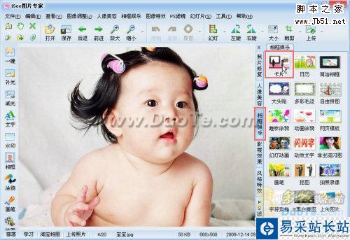 ①.iSee打開準(zhǔn)備好的的素材圖。點(diǎn)擊 右側(cè)工具欄—相框娛樂—卡片。