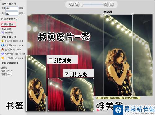 最簡單的簽名制作方法就是通過“裁剪”得到簽名。這種直接剪裁得到的長條形“書簽”很漂亮,如果再加上“圖片圓角”后會更加的唯美,所以也叫做“唯美簽”。