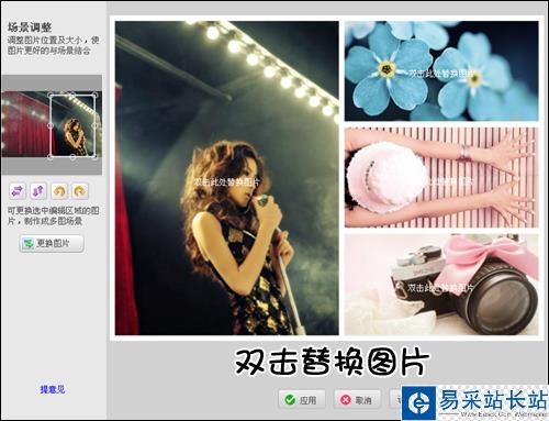 筆者在拼圖中選擇一個與簽類似的拼圖效果,左邊是一張主圖,右邊是三張點綴附圖。使用拼圖的好處就在于有固定的模板只需要“雙擊圖片來更換圖片”,而不再需要自己不斷的調整圖片所排列的位置大小,節省了很多的時間,可以讓更多的心情用于找些唯美的拼圖在點綴!