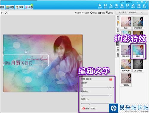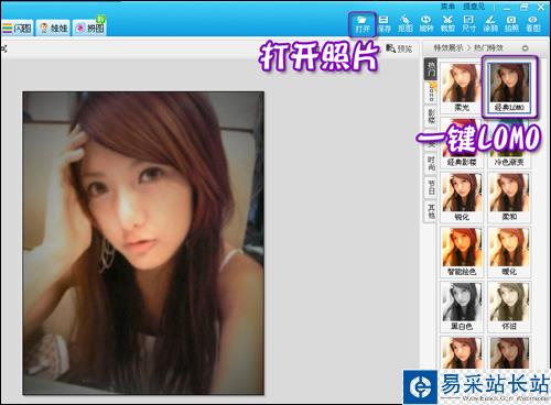 要做出這樣的動態效果方法其實很簡單,首先可以在美圖秀秀中給照片加一些特效修飾。