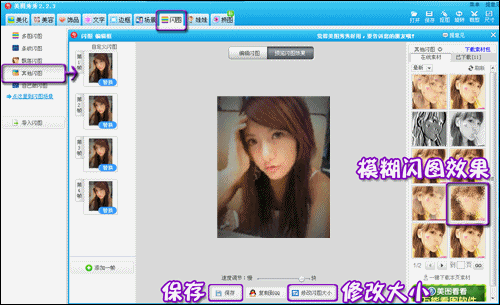 接著在閃圖標簽下添加合適的閃圖樣式即可。建議在制作閃圖時適當縮小照片大小,這樣既不影響美觀,還可以讓照片顯得相對清晰。