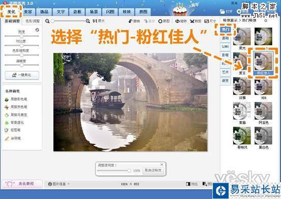 3、然后選擇“熱門-粉紅佳人”特效,讓照片色調(diào)更清新。