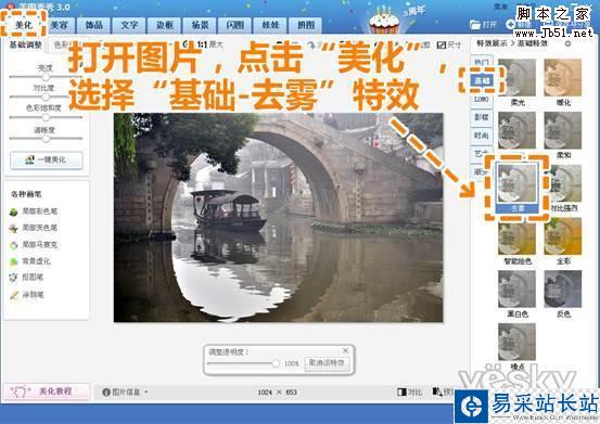 經(jīng)過“去霧”處理的照片很好的保留了水鄉(xiāng)的清晨朦朧感,又不會(huì)使霧氣有損畫面,這招“去霧”是每個(gè)愛攝影的童鞋必備的技巧哦,而且用“美圖秀秀”操作起來又非常簡(jiǎn)單,趕快來看看: