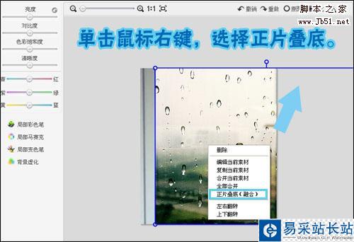 3.調整好水珠圖案后,單擊“鼠標右鍵”,選擇“正片疊底”。