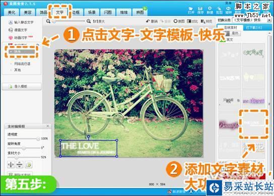 5、最后點擊“文字標簽”,選擇“文字模板?快樂”,添加相應的文字素材即可。