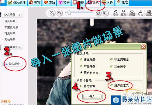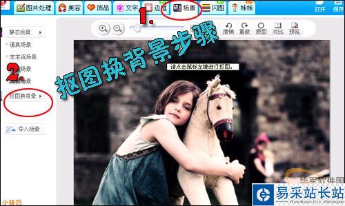 點擊“場景”菜單中的“摳圖換背景”工具。