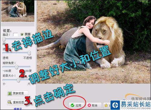 摳完圖后,選擇更換背景,或者“導入場景”,在用戶自定義導入一張獅子的圖片做背景。