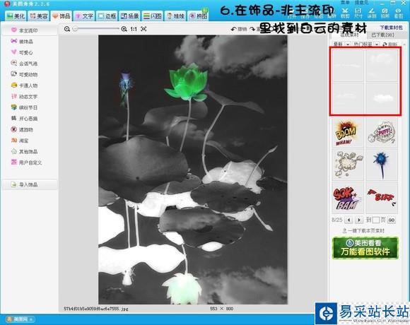 6、接著加入一些白云的素材,在“飾品”——“非主流印”里可以找到。