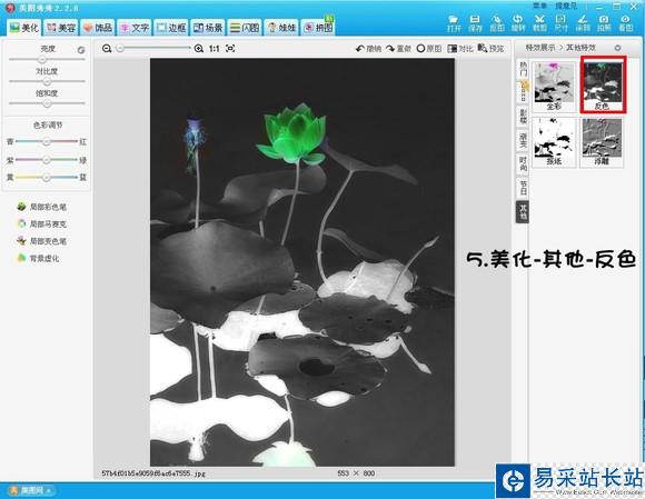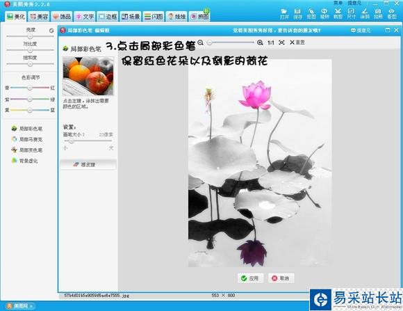 3、使用“局部彩色筆”,這里只保留荷花的顏色,為后面做準(zhǔn)備。