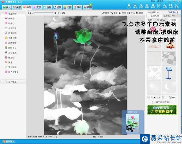 7、繼續(xù)加入多個素材,要記得調(diào)整角度、透明度哦。