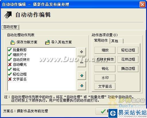 第五個是缺省方案“攝影作品發(fā)表前處理”,會在照片上留下該照片的EXIF信息,如光圈、速度啊什么的。