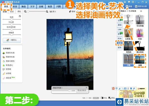 2、繼續在“美化”菜單下,選擇“藝術”分類,選擇一鍵“油畫”特效,一張仿佛需要千萬次涂抹才能完工的油畫盡顯眼底。