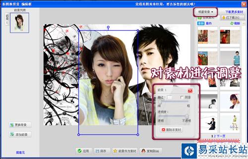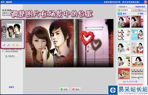 3.選擇點(diǎn)擊一個(gè)可愛唯美的場景,調(diào)整圖片在場景中的位置,一張漂亮的合照就做完啦。
