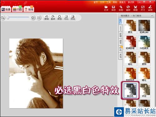 1. 制作之前先準(zhǔn)備四張“寂寞調(diào)”的圖片,并將每張圖片都做一些特效處理。(為統(tǒng)一閃圖色調(diào)都要添加“黑白色”特效哦)