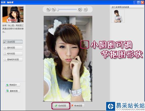 1.在“美圖秀秀”中打開自己的照片,使用“摳圖”功能將人物摳出來。