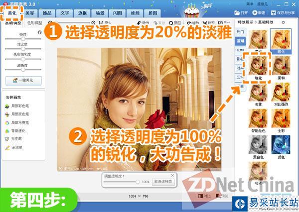 4、最后再使用透明度為20%的“淡雅”、100%的“銳化”,讓照片對比更加清晰,這樣就大功告成啦!