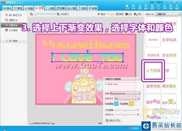 按照自己的喜好選擇不同的閃字樣式、文字大小和顏色,就可以啦。