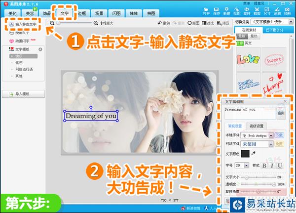 6、最后點擊“文字—輸入靜態文字”,將自己想要表達的心情輸入,就大功告成啦!