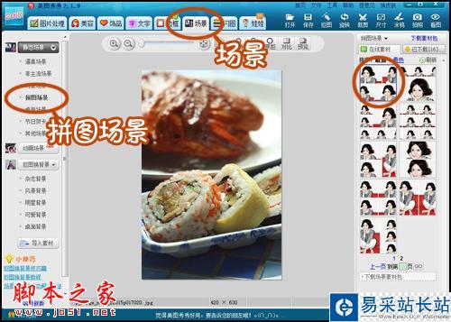二、打開圖片后,選擇“場景”界面下的“拼圖場景”功能,并在右側挑選適合的拼圖模板。(如圖4所示)