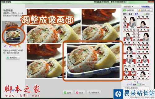 三、單擊模板后軟件會自動進入“場景 編輯框”,在左側卡可以調節照片的顯示區域,把自己想要的部分調整好。(如圖5所示)