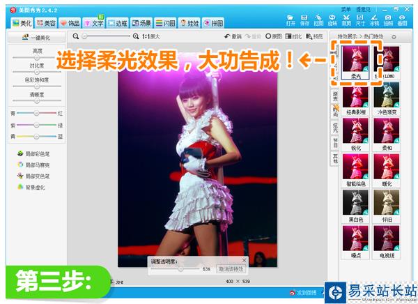 第三步:調節好色調后,最后應用一下“柔光”特效,就大功告成啦!