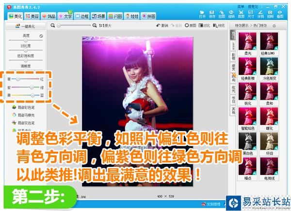 以這張劉惜君的舞臺照為例,色偏調節后的照片效果明顯更好看很多哦!