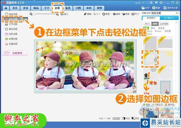 8、進入“邊框”菜單下點擊“輕松邊框”分類,選擇如圖的邊框。