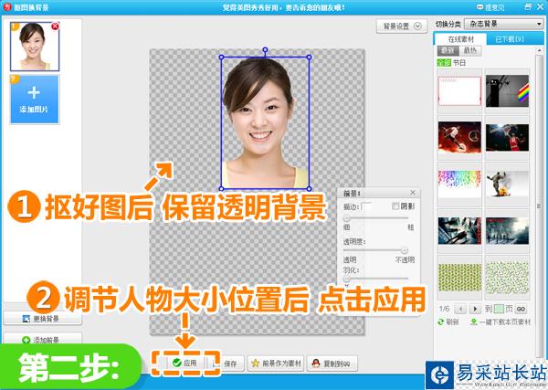 STEP2:摳好后,將背景保留為默認的透明背景,并調節人物大小位置,盡可能的靠上居中,因為后期要加軍裝衣服。