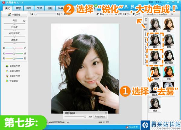 7、最后選擇“去霧”和“銳化”特效,讓照片更加明亮并且清晰。