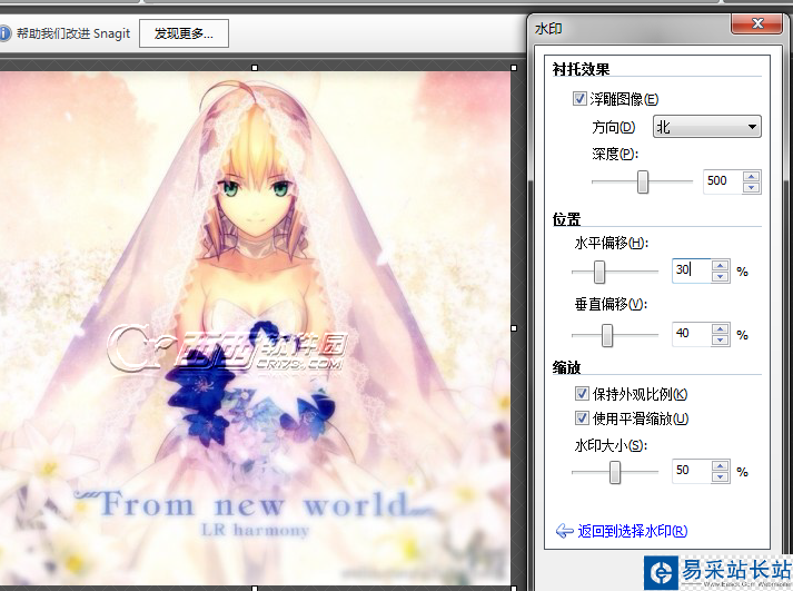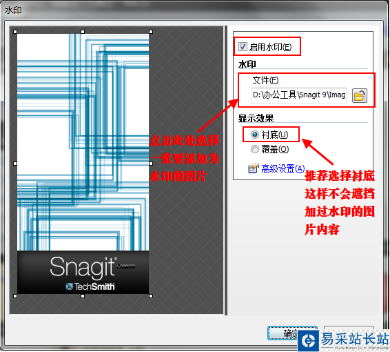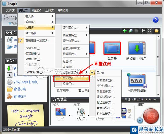 snagit可以先預設一個要添加的水印,然后截好的圖就都會帶有預設的水印。