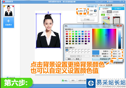 第六步、點擊背景設置更換背景顏色,也可以自定義設置顏色值