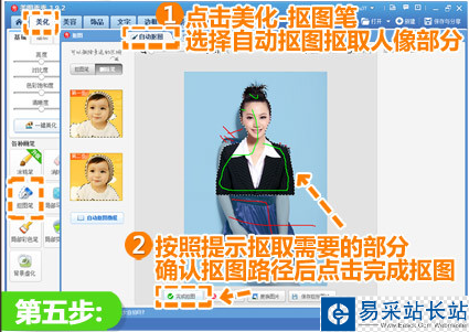 2、按照提示摳取需要的部分,確認摳圖路徑后,點擊完成摳圖