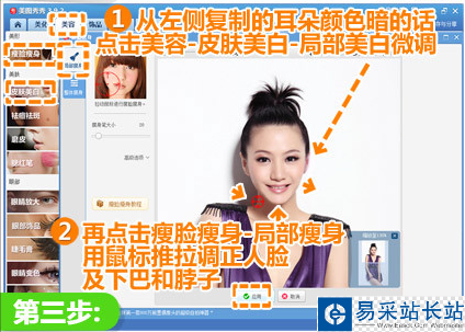 1、從左側復制的耳朵顏色暗的話,點擊美容-皮膚美白-局部美白微調