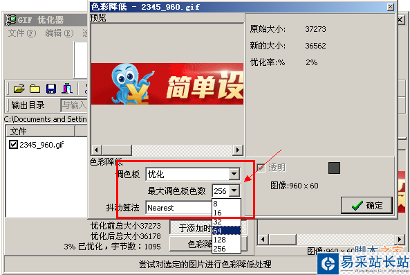 一般我們把最大調(diào)色板色數(shù),改為 128 或 64就可以了,現(xiàn)在基本上能滿足我們的要求了(30K左右)。