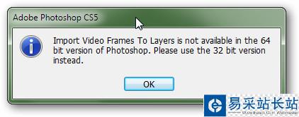 請(qǐng)注意,如果你用的是64位的PS,很可能會(huì)給你蹦出這么一個(gè)消息:不好意思,64位下不能弄,用32位的吧。