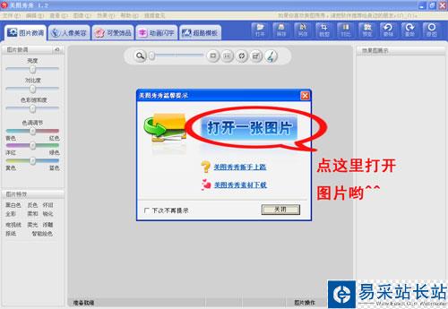 1、先下載這款名叫美圖秀秀的軟件,安裝上它。點擊“打開”按鈕打開需要加入閃圖效果的非主流圖片。