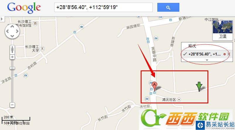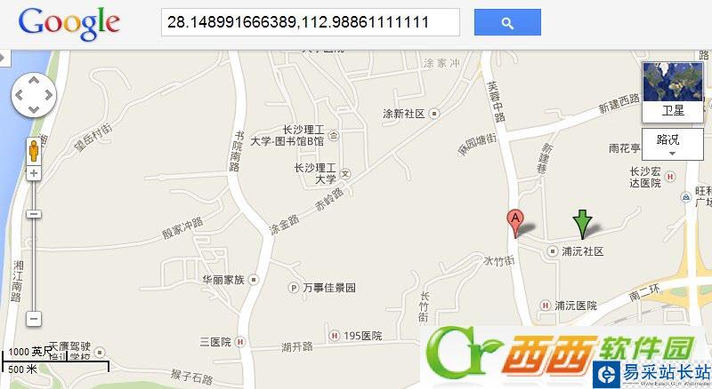 把28.148991666389,112.98861111111 粘貼到谷歌地圖搜索框,如下圖: