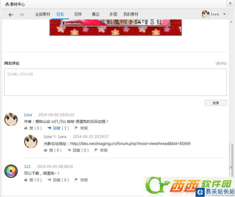 為了方便廣大用戶下載和上傳素材,將論壇的精美邊框分享給更多人使用,本版在軟件中新增了素材中心功能