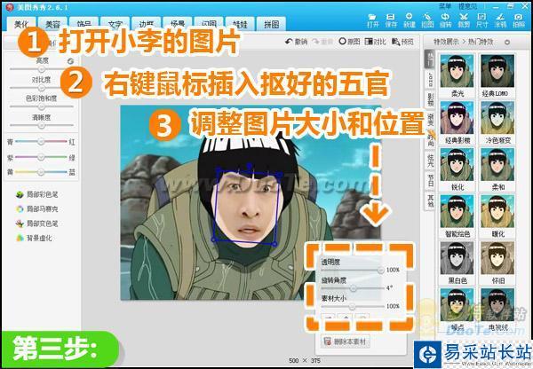 3、打開一張火影忍者中小李的圖片,單擊鼠標右鍵,插入“原圖副本”。調(diào)整好素材的位置和大小。